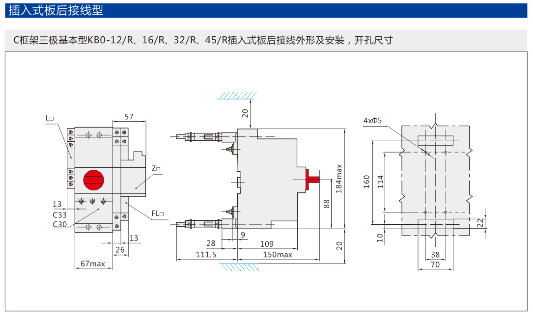 以KB0作為主開關(guān),與插入式導柱及底座組合,構(gòu)成插入式控制與保護開關(guān)電器。