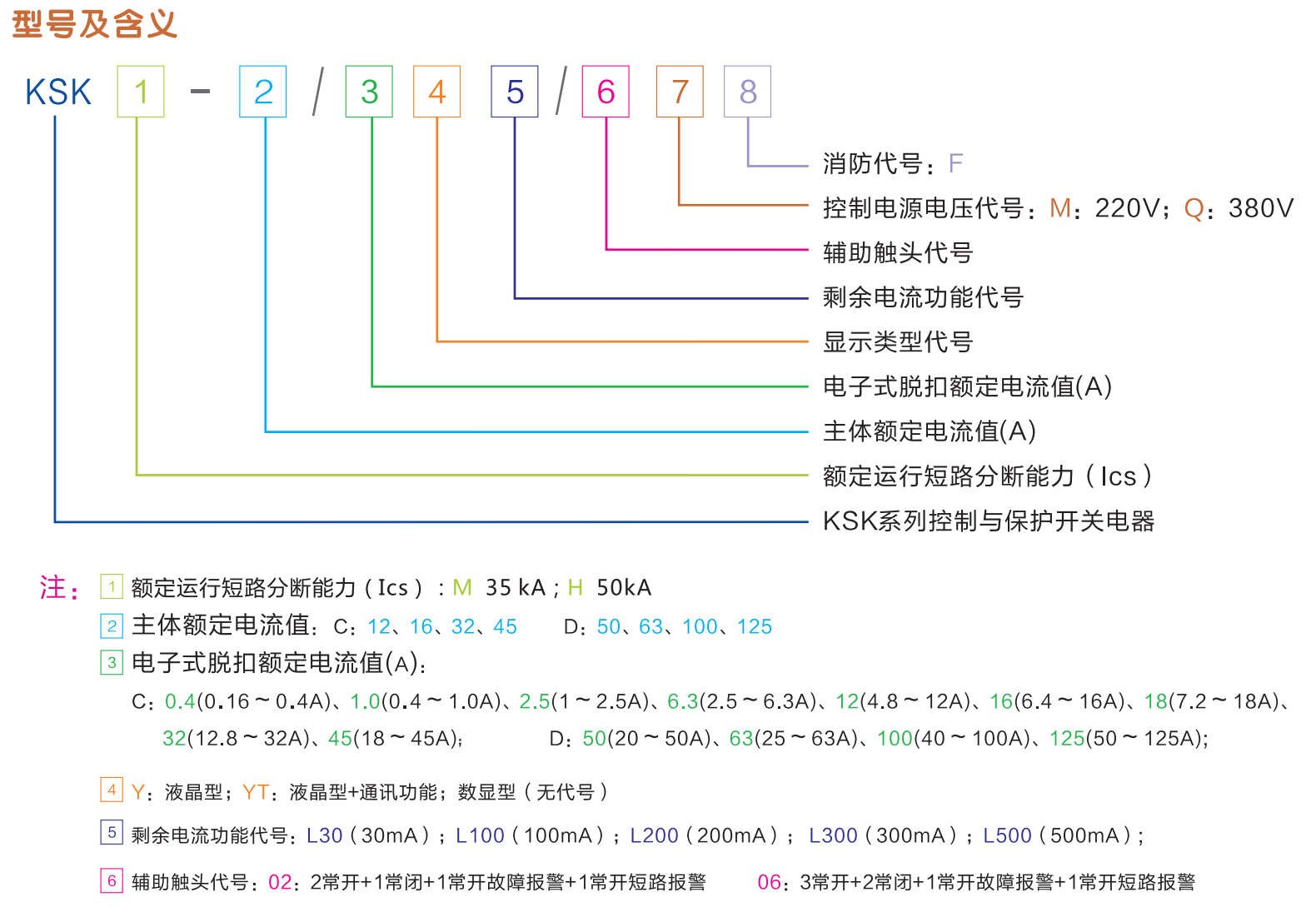 KSK數(shù)顯型系列控制與保護開關電器采用了一體化的系統(tǒng)解決方案,在更小的體積內(nèi),實現(xiàn)了更強大的功能和性能。產(chǎn)品含斷路器、接觸器及保護器功能;界面帶LED顯示。運行燈、故障燈狀態(tài)指示,功能鍵選擇所需整定的功能代號及預置參數(shù)值,測試/復位鍵用于測試脫扣器動作狀態(tài)和電子復位狀態(tài)。顯示鍵用于查看三相電流平均值和A、B、C各相電流、剩余電流、實時電壓、自整定電流及脫扣信息;選擇鍵用于設定確認,在功能鍵設置完成后按此鍵即可選擇并確認。
