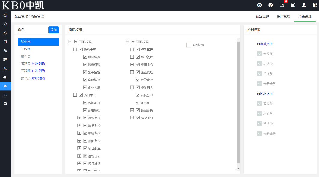 為確保能耗監(jiān)控系統(tǒng)可靠、有效且安全的運(yùn)行,中凱能耗監(jiān)控系統(tǒng)提供全方位的權(quán)限管理機(jī)制,可根據(jù)系統(tǒng)訪問、操作級別,設(shè)置不同的操作管理權(quán)限。